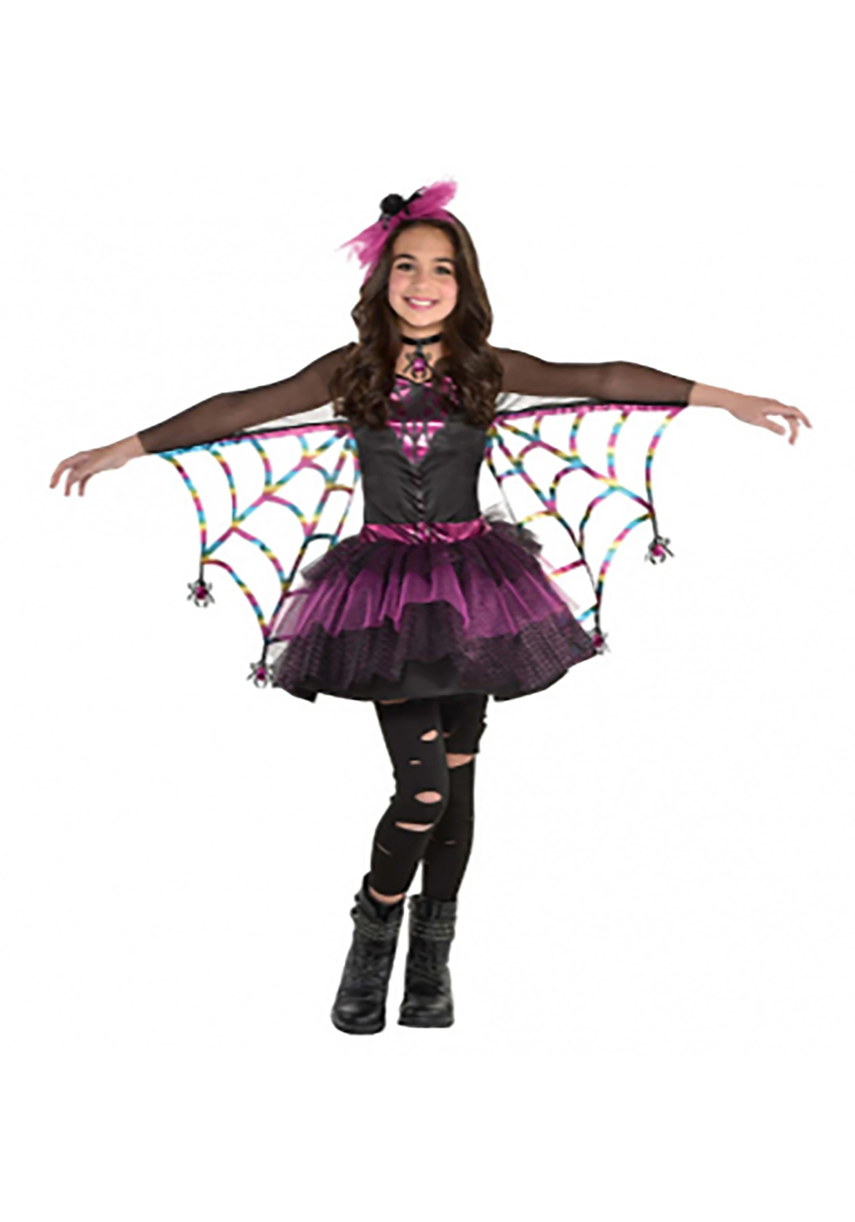 We often think of spiders as strictly creepy crawlies. Some are small, some are big, but to some people they are equally scary. Some spiders have shiny exoskeletons, while others sport hairy legs, but people shriek and run from both. But have you ever stopped to think about how beautiful some spiders are? Some have striking yellow stripes, and others have bright blue abdomens. Plus, the webs that they create are stunning pieces of engineering. Ok, that’s probably not why your child wants to dress up as a spider, but it’s still true! This Girl’s Miss Wicked Web Costume can be both creepy and beautiful.Â