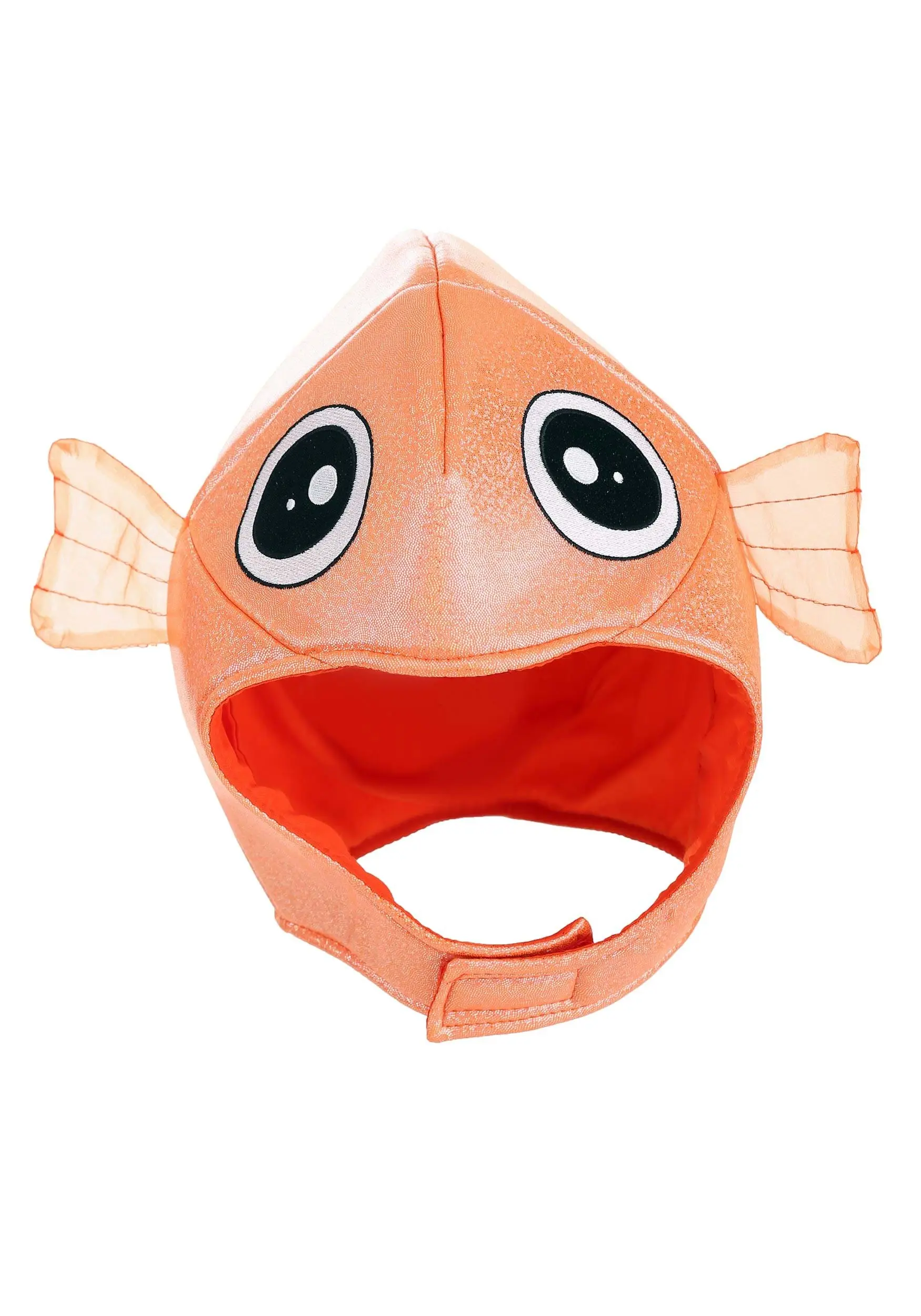 This is the perfect way to transform yourself into a brilliant golden goldfish. The hood slips around your whole head and secures under your chin with a strip of hook and loop fastener. The fabric has a gorgeous shine and two giant eyes on the front. The fins on the sides and the back complete the Goldfish disguise.Â