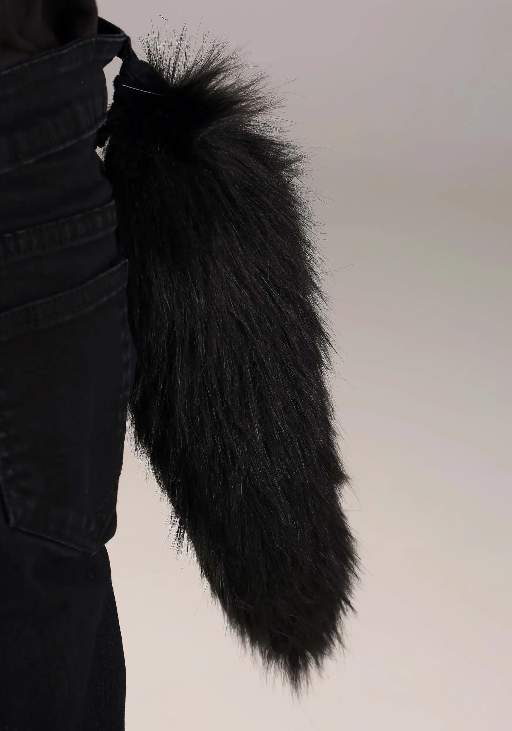- Fiberfill-stuffed faux fur tail has fabric strap w/ hook & loop fastener to attach to belt or belt loop