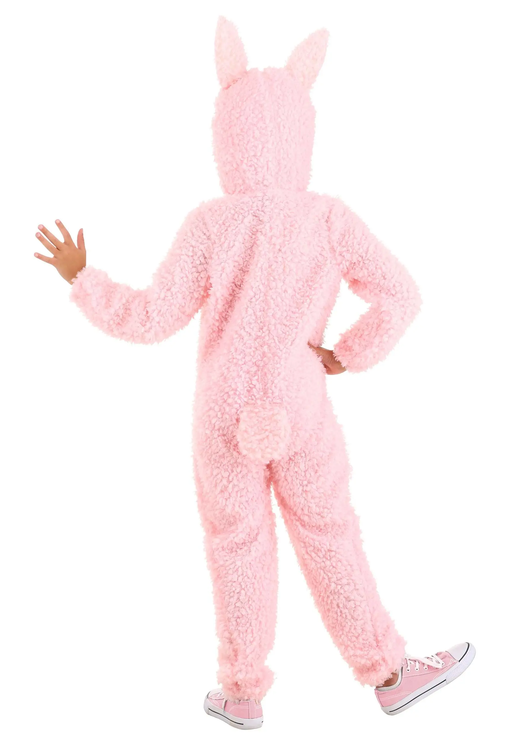 This jumpsuit style costume is made of premium fluffy pink fabric and darling details, like pom poms on the drawstrings and pointy llama ears on the too-cute hood. Full-length sleeves and legs keep your kiddo cozy while trick-or-treating or walking in the school Halloween parade. The whole look transitions easily to late-night candy eating and movie fest. Talk about a piece that’s made for the whole Halloween experience!