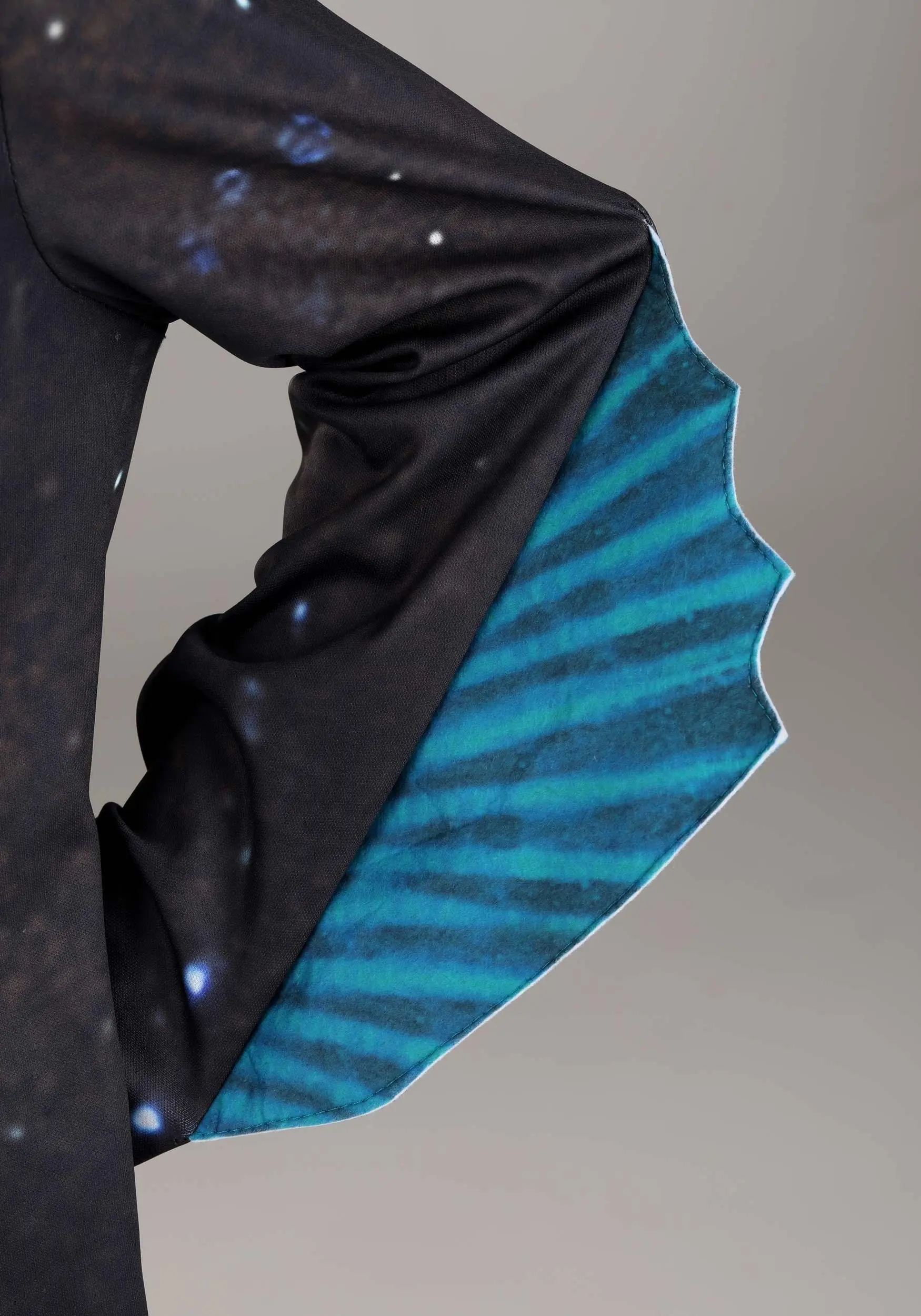 This exclusive costume brings your child a unique look that’s perfect for Halloween, costume parties, or just general marine biology appreciation. The costume starts with a dark gray jumpsuit that has a printed pattern all over it. The legs, sleeves, and sides of the jumpsuit all have stiffened blue felt fins attached.